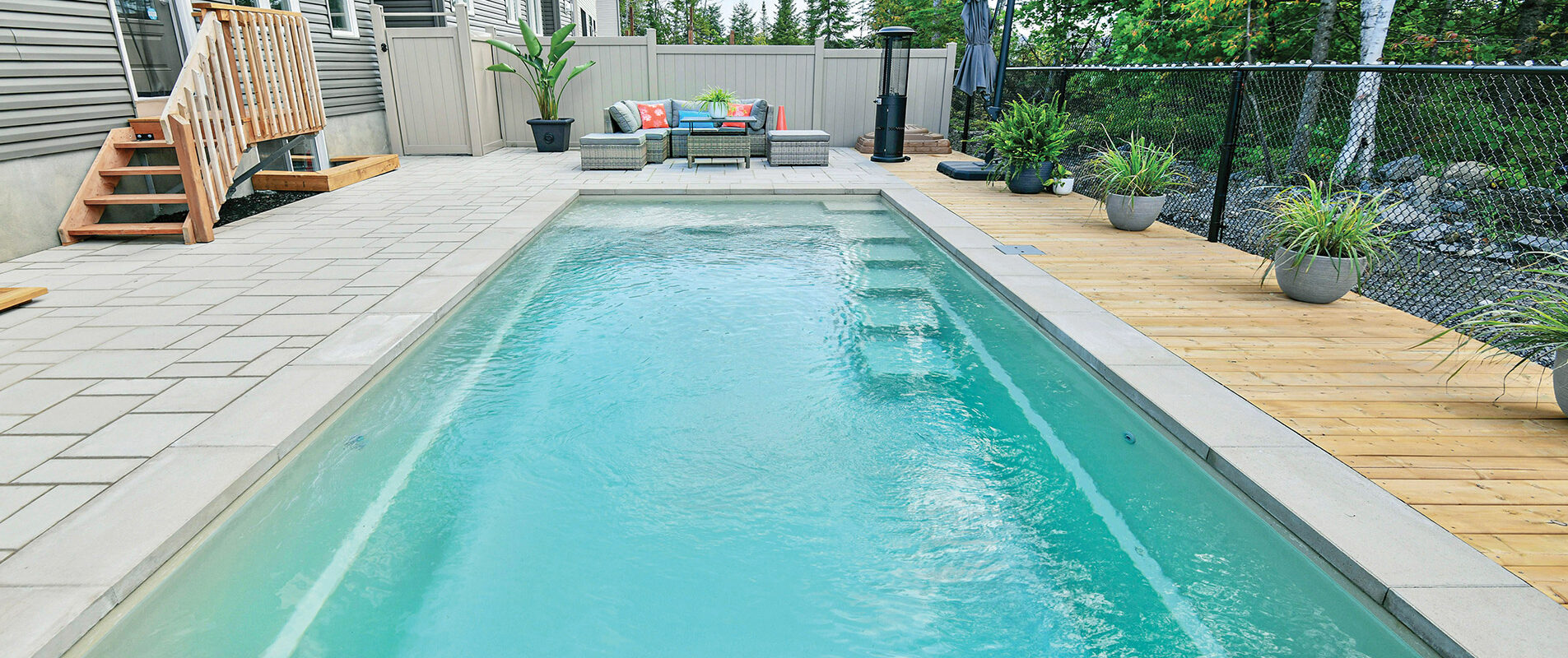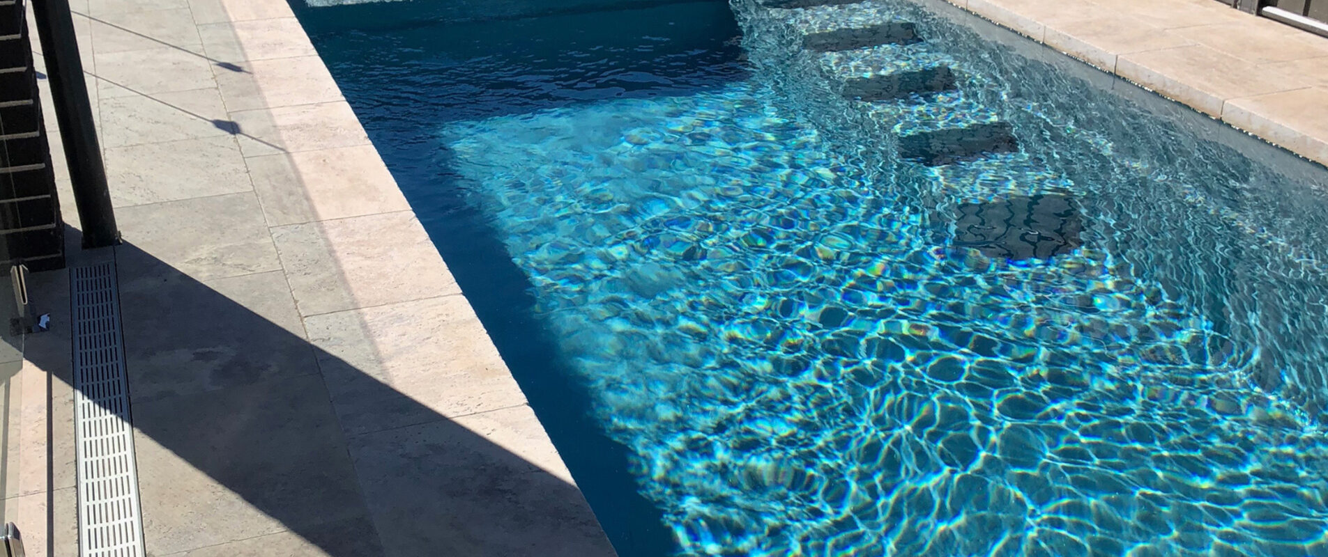 A sharp, elegant pool that offers a high water line plus a entry step / bench seat integrated into its contemporary design.